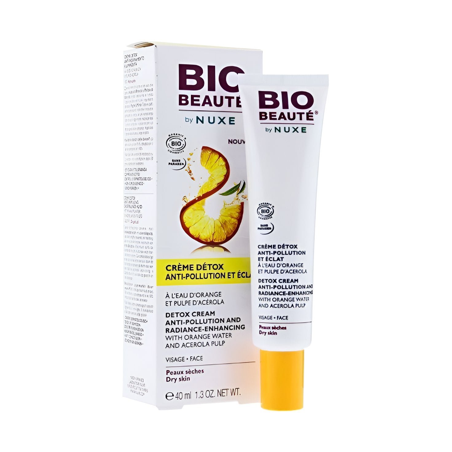 La Crème Détox Anti-pollution Bio -Beauté by Nuxe dans votre parapharmacie en ligne pas cher, le soin à l’action hydratante et lumineuse, à base de d’eau d’orange et de pulpe d’acérola, pour les visages fatigués. Peaux sensibles.