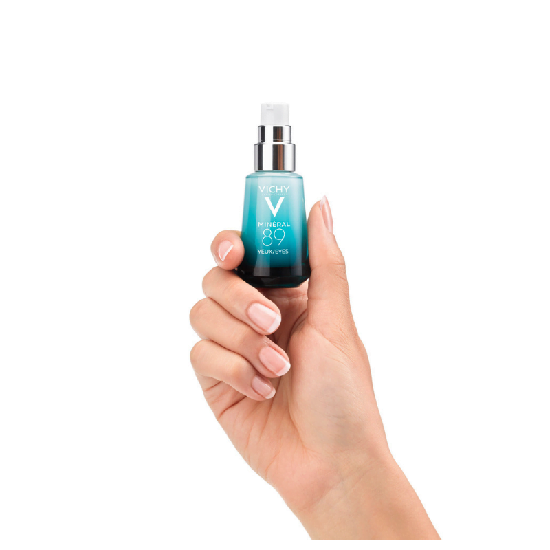 Avec 89% d’eau Volcanique de Vichy, associée à de l’acide hyaluronique d’origine naturelle et de la cafeïne décongestionnante, Minéral 89 Yeux est la dose de force pour réveiller votre regard. Minéral 89 Yeux hydrate,  lisse et réduit les cernes.